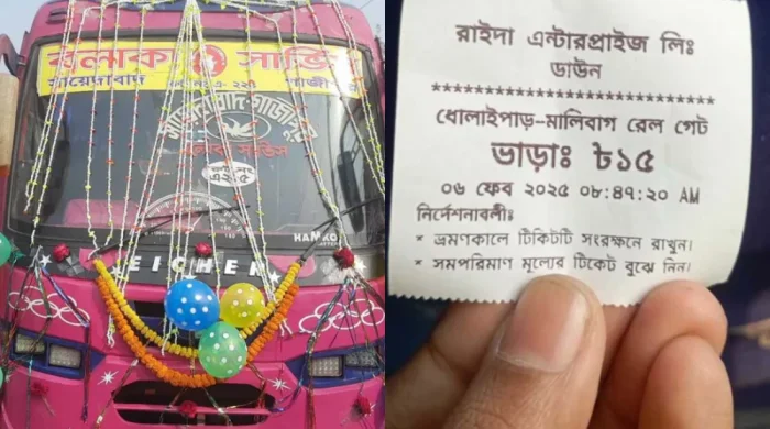 নগর পরিবহনে শৃঙ্খলা আনতে ঢাকা মহানগরীতে আজ থেকে শুরু হয়েছে কাউন্টার থেকে টিকিটিং পদ্ধতিতে গোলাপি রংয়ের বাস চলাচল। বৃহস্পতিবার (৬ ফেব্রুয়ারি) বেলা ১১টায় রাজধানীর উত্তরার আজমপুর কাঁচাবাজার (বিডিআর মার্কেট) সংলগ্ন