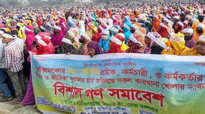 বেক্সিমকো ইন্ডাস্ট্রিয়াল পার্কের ১৬টি কারখানা খুলে দেওয়ার দাবিতে হাজার হাজার শ্রমিকের বিশাল গণসমাবেশ অনুষ্ঠিত হয়েছে। মঙ্গলবার (২১ জানুয়ারি) বিকেলে গাজীপুর মহানগরীর কাশিমপুরের সানসিটি মাঠে এ সমাবেশ অনুষ্ঠিত হয়। এর আগে