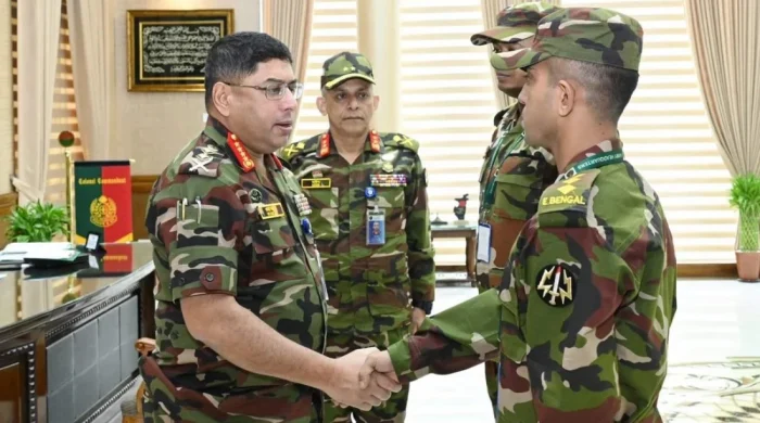 পেশাদারিত্ব এবং ধৈর্যের পরিচয় দেওয়ায় ‘সেনাগৌরব পদক’ (এসজিপি) অর্জন করেছেন বাংলাদেশ সেনাবাহিনীর আলোচিত ক্যাপ্টেন আশিক। আজ রোববার (১৮ আগস্ট) দুপুরে সেনাপ্রধান জেনারেল ওয়াকার-উজ-জামানের কার্যালয়ে তাকে এ সম্মাননা দেওয়া হয়। এ