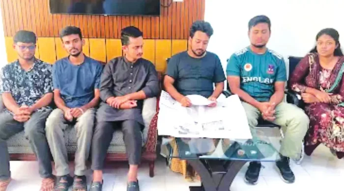 ডিবি হেফাজতে নেওয়া বৈষম্যবিরোধী ছাত্র আন্দোলনের ছয় সমন্বয়ককে ছেড়ে দেওয়া হয়েছে। বৃহস্পতিবার দুপুর দেড়টার দিকে ডিবি হেফাজত থেকে পরিবারের জিম্মায় ছেড়ে দেওয়া হয়েছে। সমন্বয়ক মো. নাহিদ ইসলামের বাবা বদরুল ইসলাম