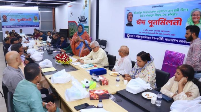 সোমবার (২২ এপ্রিল) রাতে রাজধানীর তেজগাঁও ঢাকা জেলা আওয়ামীলীগ ভবনে ঈদ পুনর্মিলনী অনুষ্ঠিত হয়। অনুষ্ঠানে উপস্থিত ছিলেন বাংলাদেশ আওয়ামীলীগ এর অর্থ ও পরিকল্পনা বিষয়ক উপ কমিটির চেয়ারম্যান