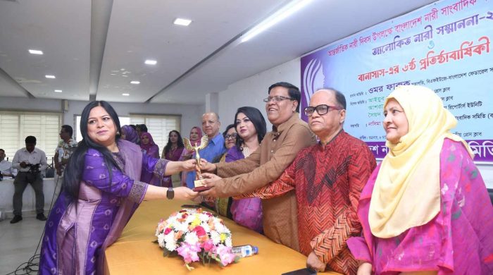 বানাসাস আলোকিত নারী সম্মাননা পেলেন ৭ নারী নারীর জয়গানের মধ্য দিয়ে আজ শুক্রবার (৮ মার্চ) আন্তর্জাতিক নারী দিবস ও সংগঠনের ষষ্ঠ প্রতিষ্ঠাবার্ষিকী পালন করেছে বাংলাদেশ নারী সাংবাদিক সমিতি (বানাসাস)।