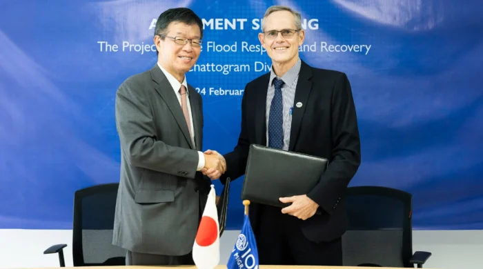 জাপান সরকার বাংলাদেশের বন্যা উপদ্রুত তিন জেলা নোয়াখালী, লক্ষ্মীপুর ও ফেনীতে বাস্তুচ্যুত ও ক্ষতিগ্রস্ত জনগোষ্ঠীকে সহায়তা দেয়ার লক্ষ্যে একটি ব্যাপক পরিকল্পনা বাস্তবায়নে আন্তর্জাতিক অভিবাসন সংস্থা (আইওএম)-কে ৩.২ মিলিয়ন ডলার সহায়তা
