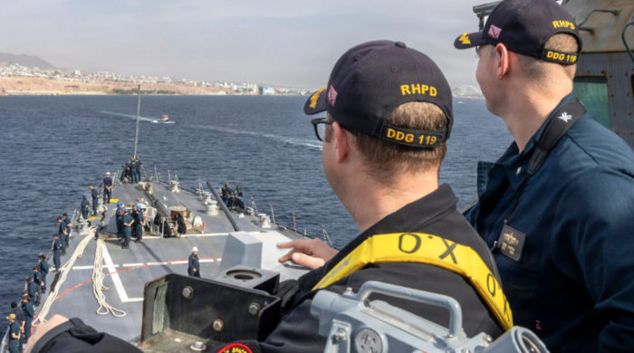 ইরানের অভিমুখে রওয়ানা হয়ে বিশ্ব আলোচনার কেন্দ্র পৌঁছা যুদ্ধযানগুলো ইসরায়েলের দক্ষিণাঞ্চলীয় বন্দর ইলাতের ঠিক দক্ষিণে অবস্থিত আকাবা উপসাগরে মোতায়েন করছে যুক্তরাষ্ট্র। ইরানকে চাপে ফেলার অংশ হিসেবেই এই জাহাজ মোতায়েন বলে