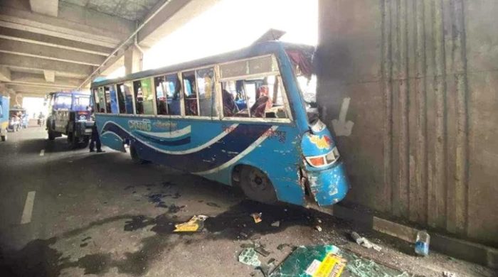 ফাঁকা রাস্তায় অতিরিক্ত গতিতে একটি বাস মেট্রোরেলের পিলারে ধাক্কা দিয়েছে। এতে বাসটির অন্তত ১০ জন যাত্রী আহত হয়েছে। মঙ্গলবার (৯ এপ্রিল) বেলা ২টার দিকে এই দুর্ঘটনা ঘটে। এই ঘটনায় বাসচালককে