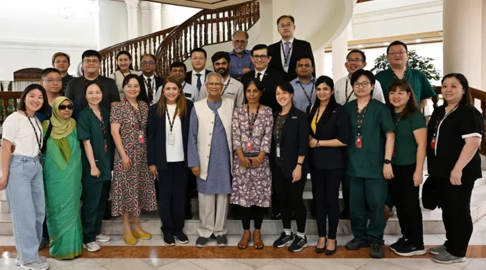 রাজধানী উত্তরায় মাইলস্টোন স্কুল অ্যান্ড কলেজ ক্যাম্পাসে বিমান দুর্ঘটনায় আহতদের বিশেষায়িত চিকিৎসাসেবা দিতে আসা সিঙ্গাপুর, চীন এবং ভারতের ২১ চিকিৎসক ও নার্সের একটি প্রতিনিধিদলকে আন্তরিক কৃতজ্ঞতা জানিয়েছেন অন্তর্বর্তীকালীন সরকারের প্রধান