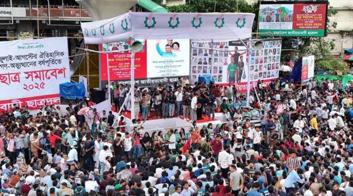 কোরআন তেলাওয়াতের পর জাতীয় সংগীত গাওয়ার মধ্যদিয়ে জুলাই-আগস্ট গণঅভ্যুত্থানের বর্ষপূর্তি উপলক্ষ্যে আয়োজিত ছাত্রদলের ছাত্র সমাবেশ শুরু হয়েছে। আজ রবিবার(৩ জুলাই) বিকেল ৩টা ১৫ মিনিটে রাজধানীর শাহবাগ মোড়ে এই সমাবেশ শুরু
