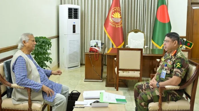 অন্তর্বর্তী সরকারের প্রধান উপদেষ্টা প্রফেসর ড. মুহাম্মদ ইউনূস এর সঙ্গে সৌজন্য সাক্ষাৎ করেছেন সেনাবাহিনী প্রধান জেনারেল ওয়াকার-উজ-জামান। আন্ত:বাহিনী জনসংযোগ পরিদপ্তরের (আইএসপিআর) এক সংবাদ বিজ্ঞপ্তিতে জানানো হয়, আজ বুধবার রাষ্ট্রীয় অতিথি