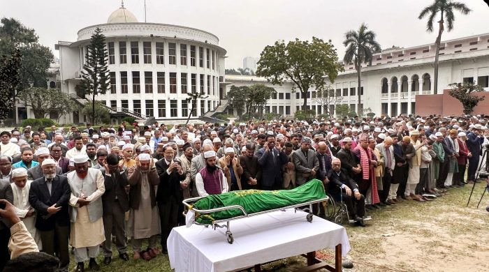 শ্রদ্ধা ও ভালবাসায় প্রিয় প্রাঙ্গণ সুপ্রিম কোর্ট থেকে অন্তর্বর্তী সরকারের উপদেষ্টা ও সাবেক এটর্নি জেনারেল বিশিষ্ট আইনজীবী এ এফ হাসান আরিফকে শেষ বিদায় জানালো তাঁর দীর্ঘ দিনের সহকর্মী, স্বজন ও