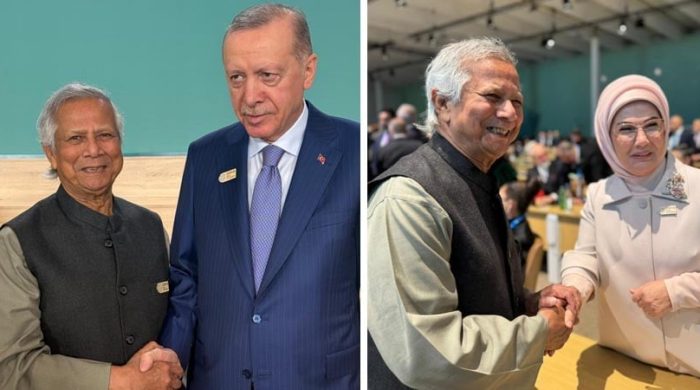 আজারবাইজানের রাজধানী বাকুতে কপ-২৯ জলবায়ু সম্মেলনের সাইডলাইনে প্রধান উপদেষ্টা অধ্যাপক ড. মুহাম্মদ ইউনূসের সঙ্গে আজ তুরস্কের প্রেসিডেন্ট রিসেপ তাইয়েপ এরদোয়ান এবং সংযুক্ত আরব আমিরাতের প্রেসিডেন্ট মোহাম্মদ বিন জায়েদ আল নাহিয়ানসহ