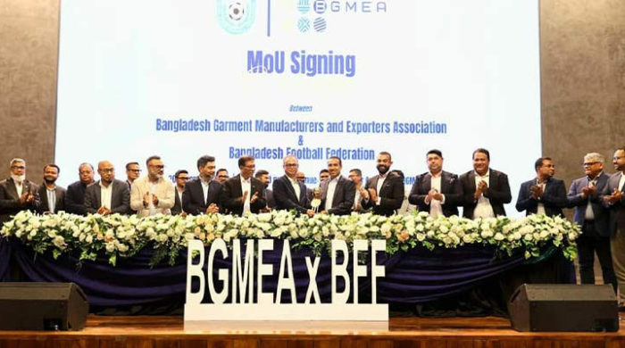 বাংলাদেশের রপ্তানি আয়ের অন্যতম প্রধান চালিকাশক্তি তৈরি পোশাক শিল্প।এই খাতের সংগঠন বিজিএমইএ এবার বাংলাদেশ ফুটবলের পাশে দাঁড়িয়েছে। আজ রোববার ( ৩০ নভেম্বর) বিকেলে বাংলাদেশ ফুটবল ফেডারেশন (বাফুফে) ও বিজিএমইএ’র মধ্যে