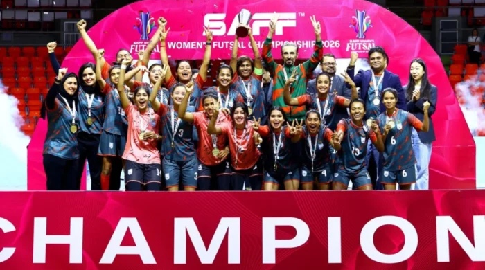 থাইল্যান্ডের ব্যাংককে উইমেন’স ফুটসাল চ্যাম্পিয়নশিপের লিগ পর্বের শেষ ম্যাচে মালদ্বীপকে ১৪–২ গোলে উড়িয়ে দিয়ে ইতিহাস গড়েছে বাংলাদেশ। এই বিশাল জয়ের মধ্য দিয়ে অপরাজিত চ্যাম্পিয়ন হয়ে প্রথমবারের মতো শিরোপা জয় করল