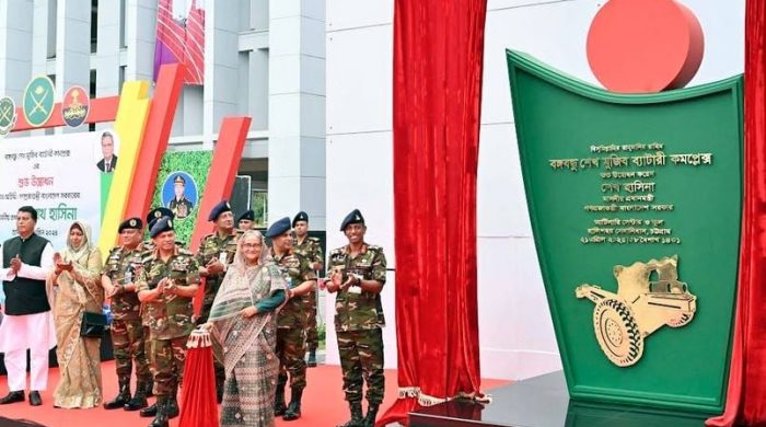 প্রধানমন্ত্রী শেখ হাসিনা চট্টগ্রামের হালিশহর সেনানিবাসে আর্টিলারি সেন্টার ও স্কুলে নবনির্মিত ‘বঙ্গবন্ধু শেখ মুজিব ব্যাটারী কমপ্লেক্স’ এর উদ্বোধন করেছেন। তিনি আজ সকালে এর উদ্বোধনী ফলক উন্মোচনের মাধ্যমে কমপ্লেক্সের উদ্বোধন করেন।