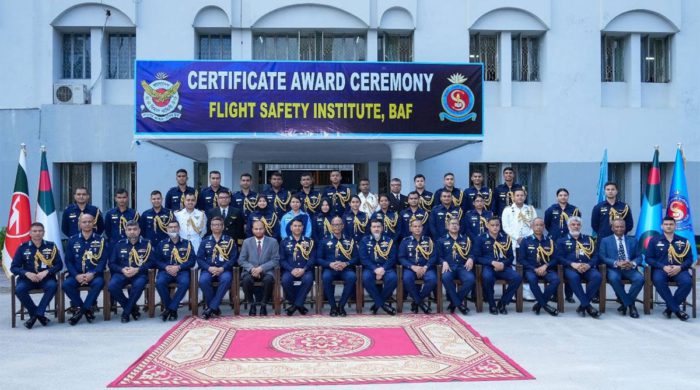 বাংলাদেশ বিমান বাহিনীর ৭৪তম ফ্লাইট সেফটি অফিসার্স কোর্সের সনদপত্র বিতরণ অনুষ্ঠিত হয়েছে। আজ সোমবার ( ২৯ সেপ্টেম্বর) ঢাকা সেনানিবাসস্থ ফ্লাইট সেফটি ইনস্টিটিউটে সেফটি অফিসার্স কোর্সের সনদপত্র বিতরণ অনুষ্ঠান অনুষ্ঠিত হয়।