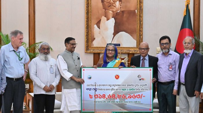 প্রধানমন্ত্রী শেখ হাসিনা পদ্মা সেতু নির্মাণে নেওয়া ঋণ পরিশোধের ৭ম ও ৮ম কিস্তি হিসেবে ৩১৪,৬৪,৮৬,৯৬৩ টাকার বেশি গ্রহণ করেছেন। আজ বৃহস্পতিবার(২৭.০৬.২৪) গণভবনে এক অনুষ্ঠানে সড়ক পরিবহন ও সেতুমন্ত্রী ওবায়দুল কাদের
