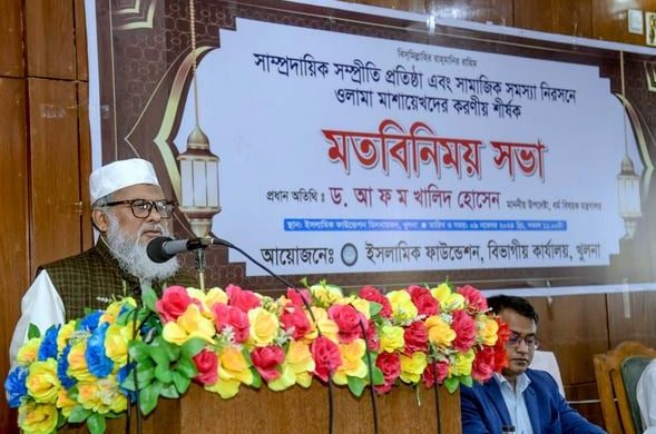 ধর্ম উপদেষ্টা ড. আ ফ ম খালিদ হোসেন বলেছেন, আলেম সমাজ সামাজিক শক্তির প্রতিভূ। তাদের সঙ্গে জনসম্পৃক্ততা ও সামাজের প্রগাঢ় বন্ধন রয়েছে। আজ শনিবার খুলনা ইসলামিক ফাউন্ডেশন বিভাগীয় কার্যালয়ে ‘সাম্প্রদায়িক