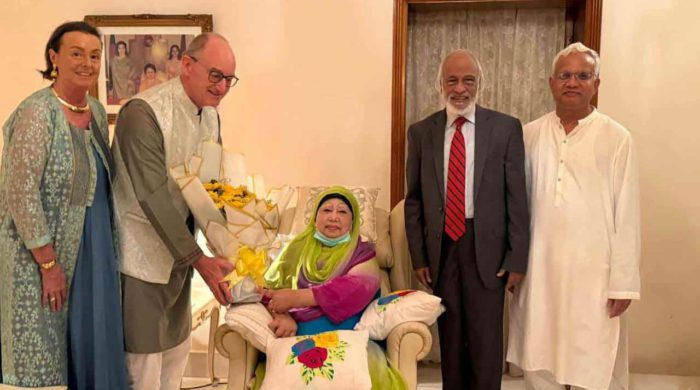 বিএনপির চেয়ারপারসন ও সাবেক প্রধানমন্ত্রী বেগম খালেদা জিয়ার সঙ্গে সৌজন্য সাক্ষাৎ করেছেন ঢাকায় নিযুক্ত জার্মানির বিদায়ী রাষ্ট্রদূত আখিম ট্রোসটার ও তার সহধর্মিণী। শুক্রবার (২০ জুন) রাত সাড়ে ৮টার দিকে বিএনপির