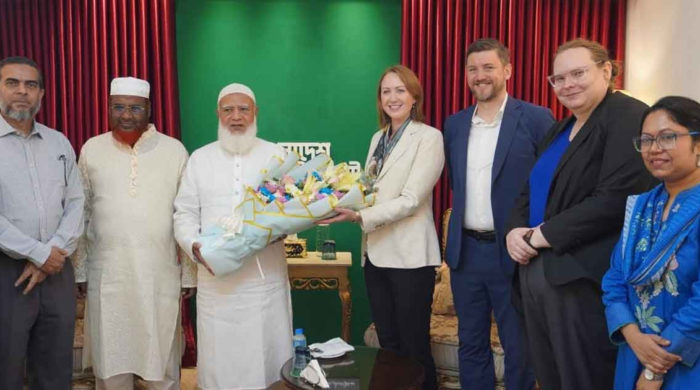 বাংলাদেশ জামায়াতে ইসলামীর আমির ডা. শফিকুর রহমানের সঙ্গে সাক্ষাৎ করেছেন জাতিসংঘের ঢাকাস্থ বিদায়ী আবাসিক সমন্বয়কারী গোয়েন লুইস। এ সময় তার সঙ্গে ছিলেন জাতিসংঘের আবাসিক প্রতিনিধির মানবাধিকার বিষয়ক উপদেষ্টা হুমা খান।