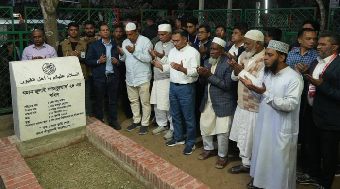 ২৪ এর জুলাই গণঅভ্যুত্থাণে শহীদ আবু সাঈদের কবর জিয়ারত করেছেন বিএনপি চেয়ারম্যান তারেক রহমান। আজ শুক্রবার (৩০ জানুয়ারি) সন্ধ্যায় পীরগঞ্জের জাফরপাড়া বাবনপুর গ্রামে পৌঁছান বিএনপি চেয়ারম্যান। তিনি কবর জিয়ারতের পর