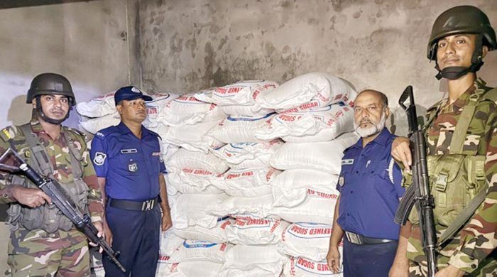 নেত্রকোনার পূর্বধলা উপজেলায় পুলিশ ও সেনাবাহিনীর যৌথ অভিযানে আড়াই টন (২ হাজার ৫০০ কেজি) ভারতীয় চিনি জব্দ করা হয়েছে। যার আনুমানিক বাজার মূল্য দুই লক্ষ পঞ্চাশ হাজার টাকা। সোমবার রাত