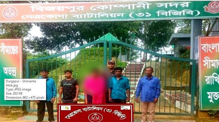 নেত্রকোনার দুর্গাপুর উপজেলার বিজয়পুর সীমান্ত দিয়ে ভারতে অনুপ্রবেশের চেষ্টাকালে ভারতীয় মানব পাচারকারী চক্রের সদস্যসহ পাঁচজন বাংলাদেশি নাগরিককে আটক করেছে বাংলাদেশ বর্ডার গার্ড (বিজিবি) সদস্যরা। তার মধ্যে দুজন বাবা-মেয়ে ও বাকি
