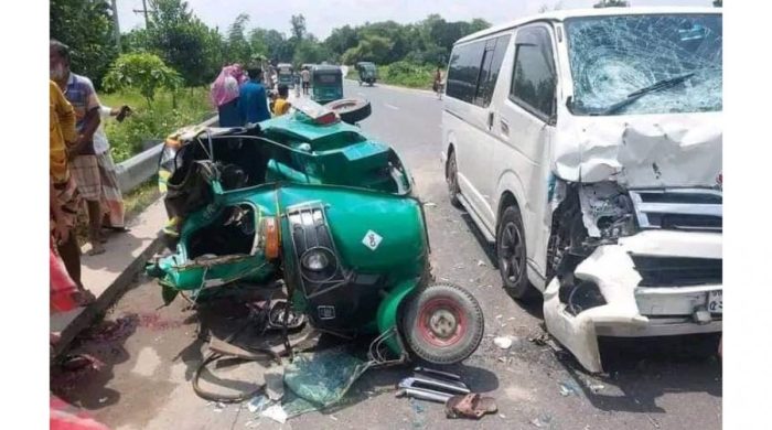 সিরাজগঞ্জের কামারখন্দে মাইক্রোবাসচাপায় সিএনজিচালিত অটোরিকশার চার যাত্রী ও চালকসহ পাঁচ জন নিহত হয়েছেন। আহত হয়েছেন আরও দুজন। কামারখন্দ থানার ভারপ্রাপ্ত কর্মকর্তা (ওসি) রেজাউল করিম জানান, রবিবার (৮ সেপ্টেম্বর) দুপুর ১২টার