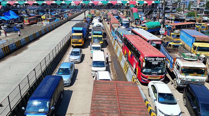 শুক্রবার ছুটির দিনে ঢাকা-চট্টগ্রাম মহাসড়কের নারায়ণগঞ্জের সিদ্ধিরগঞ্জের সানারপাড় থেকে বন্দরের লাঙ্গলবন্দ এলাকা পর্যন্ত চট্টগ্রামমুখী লেনে প্রায় ১৪ কিলোমিটার যানজটের সৃষ্টি হয়েছে। আজ শুক্রবার (৩০ আগস্ট) বেলা সাড়ে ১১টায় ঢাকা-চট্টগ্রাম মহাসড়কের