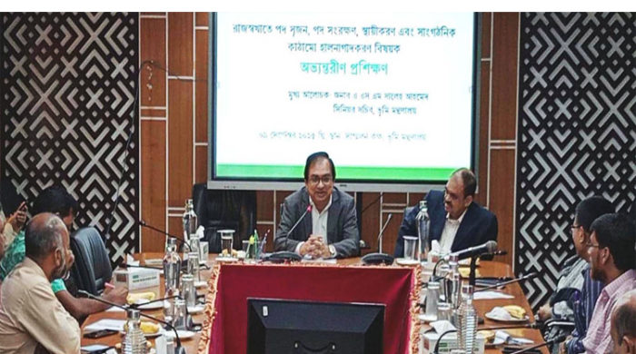 ভূমি প্রশাসনের উন্নয়নের জন্য প্রশিক্ষণ একটি অপরিহার্য বিষয় বলে মন্তব্য করেছেন ভূমি মন্ত্রণালয়ের সিনিয়র সচিব এ এস এম সালেহ আহমেদ । আজ মঙ্গলবার ( ৯ সেপ্টেম্বর) সকালে ভূমি মন্ত্রণালয়ের সভাকক্ষে