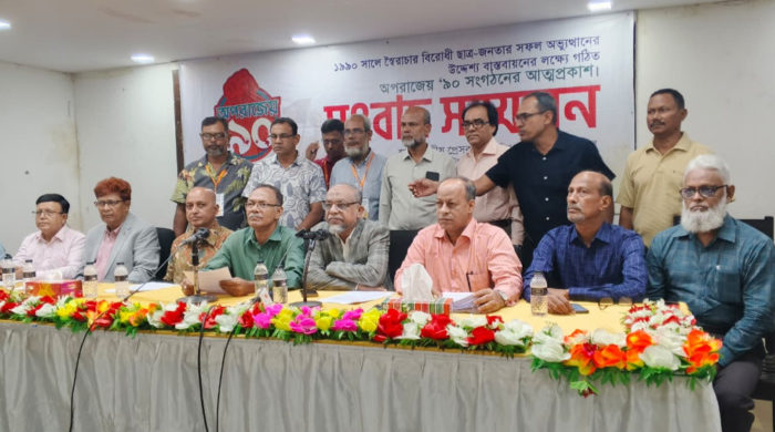 ৯০ এর স্বৈরাচারবিরোধী ছাত্র আন্দোলনকে জুলাই সনদে অন্তর্ভুক্ত করার দাবি জানিয়েছেন ‘অপরাজেয় ৯০’ নামের একটি সংগঠন। আজ বৃহস্পতিবার (২৮ আগস্ট) রাজধানীর জাতীয় প্রেস ক্লাবের জহুর হোসেন চৌধুরী হলে সংগঠনটির আত্মপ্রকাশকে