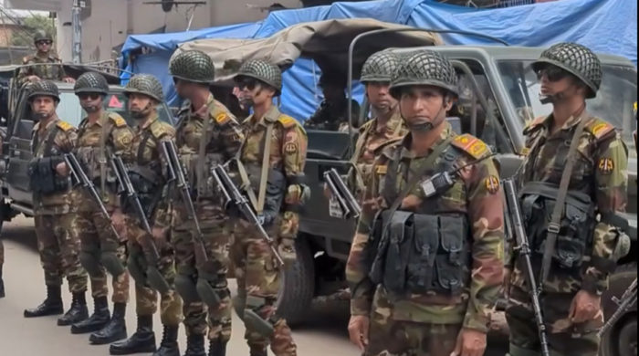 রাজধানী ঢাকায় সতর্ক অবস্থান নিয়েছে যৌথবাহিনী। সড়কে টহল দেয়ার পাশাপাশি সন্দেহ হলে বিভিন্ন জায়গায় তল্লাশি করতেও দেখা গেছে। ফিলিস্তিনে ইসরায়েলের বর্বরতা ও ভারতে মুসলিমদের ওপর আক্রমণের প্রতিবাদে আজ শুক্রবার (২১