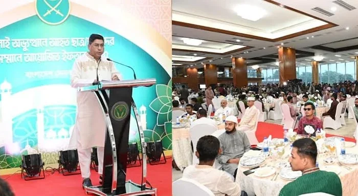 জুলাই গণঅভ্যুত্থানে আহত ছাত্র-ছাত্রীদের সম্মানে বাংলাদেশ সেনাবাহিনী ইফতার ও নৈশভোজের আয়োজন করে। রোববার সন্ধ্যায় ঢাকা সেনানিবাসে সেনামালঞ্চে ইফতার ও নৈশভোজের আয়োজন করা হয়। এ সময় সেনাবাহিনী প্রধান জেনারেল ওয়াকার-উজ-জামান জুলাই
