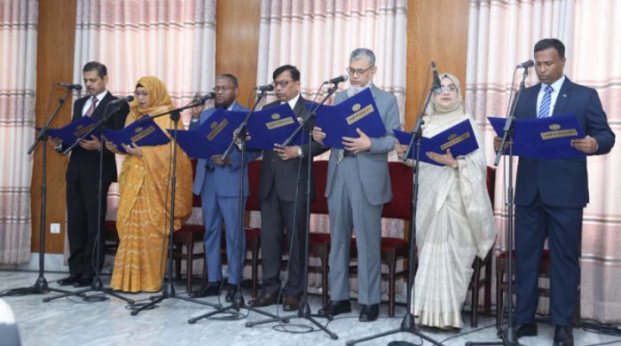 সদ্য নিয়োগ পাওয়া সরকারি কর্ম কমিশনের (পিএসসি) সাত সদস্য শপথ গ্রহণ করেছেন। আজ রোববার (২ মার্চ) সুপ্রিম কোর্টের জাজেস লাউঞ্জে প্রধান বিচারপতি সৈয়দ রেফাত আহমেদ পিএসসি’র নতুন সদস্যদের শপথ বাক্য