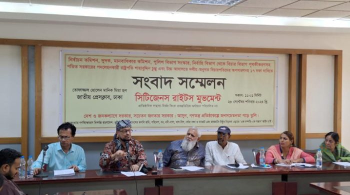 স্বৈরাচার আওয়ামী লীগ সরকারের নিয়োগপ্রাপ্ত রাষ্ট্রপতি মোহাম্মদ সাহাবুদ্দিনকে অপসারণ কারার দাবি জানিয়েছে সিটিজেনস রাইটস মুভমেন্টের নেতারা। এর পাশাপাশি সংবিধানে গণপ্রজাতন্ত্রী বাংলাদেশের স্থলে জনগণতান্ত্রিক বাংলাদেশ নাম করার দাবি করেন সংগঠনের নেতারা।