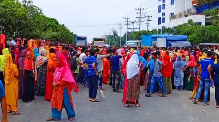 গাজীপুরের ভবানীপুর এলাকার আর অ্যান্ড জি বিডি গার্মেন্টস লিমিটেড কারখানার শ্রমিকরা হাজিরা বোনাস, নাইট বিল ও টিফিন বিল বৃদ্ধি, প্রশাসন বিভাগের ব্যবস্থাপকের অপসারণসহ ১২ দফা দাবিতে ঢাকা-ময়মনসিংহ মহাসড়ক অবরোধ করে