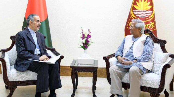 অন্তর্বর্তীকালীন সরকারের প্রধান উপদেষ্টা অধ্যাপক ড. মুহাম্মদ ইউনূসের সঙ্গে সৌজন্য সাক্ষাৎ করেছেন ঢাকায় নিযুক্ত ইরানের রাষ্ট্রদূত মনসুর চাভুশি। এ সময় ব্যবসা-বাণিজ্য, সংস্কৃতি, জ্বালানি, শিক্ষা ও স্বাস্থ্যসহ অর্থনৈতিক ক্ষেত্রে দ্বিপাক্ষিক সম্পৃক্ততাকে