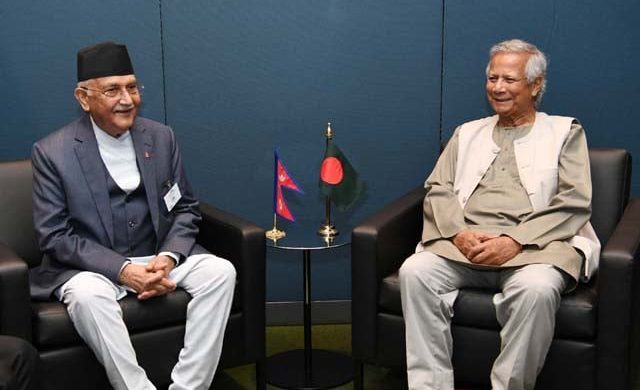 প্রধান উপদেষ্টা অধ্যাপক মুহাম্মদ ইউনূস এবং নেপালের প্রধানমন্ত্রী কে পি শর্মা ওলি বাংলাদেশ ও নেপালের মধ্যে জ্বালানি, বাণিজ্য ও অর্থনৈতিক সহযোগিতা জোদারের বিষয়ে আলোচনা করেছেন। বুধবার বিকেলে (স্থানীয় সময়) এখানে