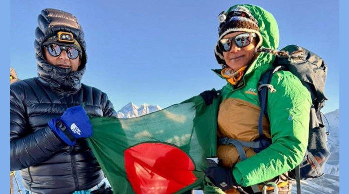 নেপালের খুম্বু অঞ্চলের ৬ হাজার ৪৭৬ মিটার উচ্চতার ‘মেরা পিক’ পর্বতের চূড়ায় বাংলাদেশের পতাকা ওড়ালেন ইমতিয়াজ ইলাহী ও শাহনাজ আক্তার। ইমতিয়াজ সাবেক সেনা কর্মকর্তা, আর ডা. শাহনাজ পেশায় একজন দন্ত