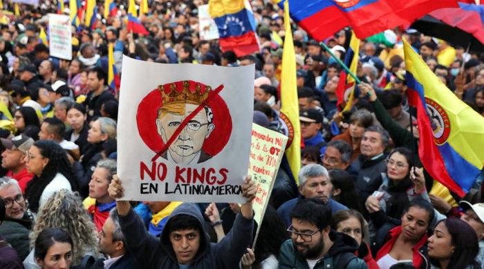 কলম্বিয়ায় ডোনাল্ড ট্রাম্পের সামরিক অভিযানের হুমকির বিরুদ্ধে জাতীয় সার্বভৌমত্ব রক্ষায় লাতিন এ দেশটিতে ব্যাপক বিক্ষোভ শুরু হয়েছে। রাজধানী বোগোতাসহ কলম্বিয়ার বিভিন্ন শহরের জনসমাগমস্থলে লাখো মানুষ মার্কিনবিরোধী স্লোগান দিয়ে এর প্রতিবাদ