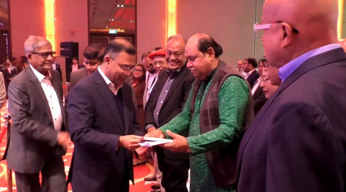 বিএনপির চেয়ারম্যান তারেক রহমান গণমাধ্যমের সাংবাদিকদের সঙ্গে শুভেচ্ছা বিনিময় করছেন। আজ শনিবার (১০ জানুয়ারি) বেলা সোয়া ১১টায় রাজধানীর বনানীর হোটেল শেরাটনের গ্র্যান্ড বলরুমে এ অনুষ্ঠান শুরু হয়। এতে দেশের বিভিন্ন
