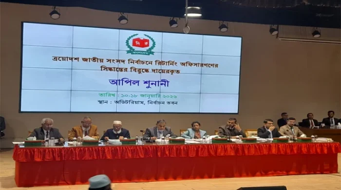 আসন্ন ত্রয়োদশ জাতীয় সংসদ নির্বাচনে রিটার্নিং অফিসার কর্তৃক মনোনয়নপত্র গ্রহণ ও বাতিলের আদেশের বিরুদ্ধে নির্বাচন কমিশনে (ইসি) দায়ের করা আপিল আবেদনের শুনানি চলছে। আজ শনিবার ( ১০ জানুয়ারি) রাজধানীর আগারগাঁও