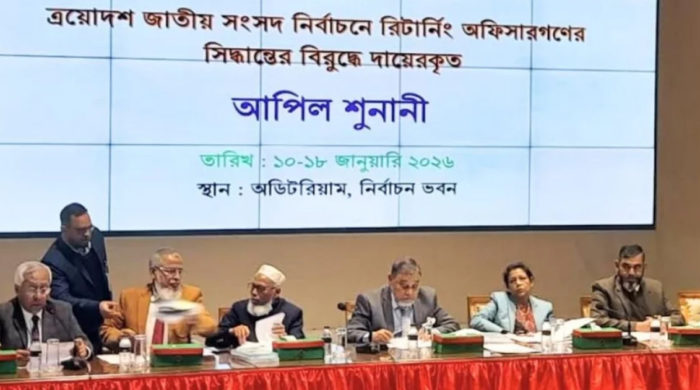 আসন্ন ত্রয়োদশ জাতীয় সংসদ নির্বাচনে রিটার্নিং অফিসার কর্তৃক প্রার্থিতা বাতিলের আদেশের বিরুদ্ধে নির্বাচন কমিশনে (ইসি) আপিল নিষ্পত্তির দ্বিতীয় দিনের শুনানি চলছে। আজ রোববার (১১ জানুয়ারি) সকাল ১০টা থেকে নির্বাচন কমিশনে